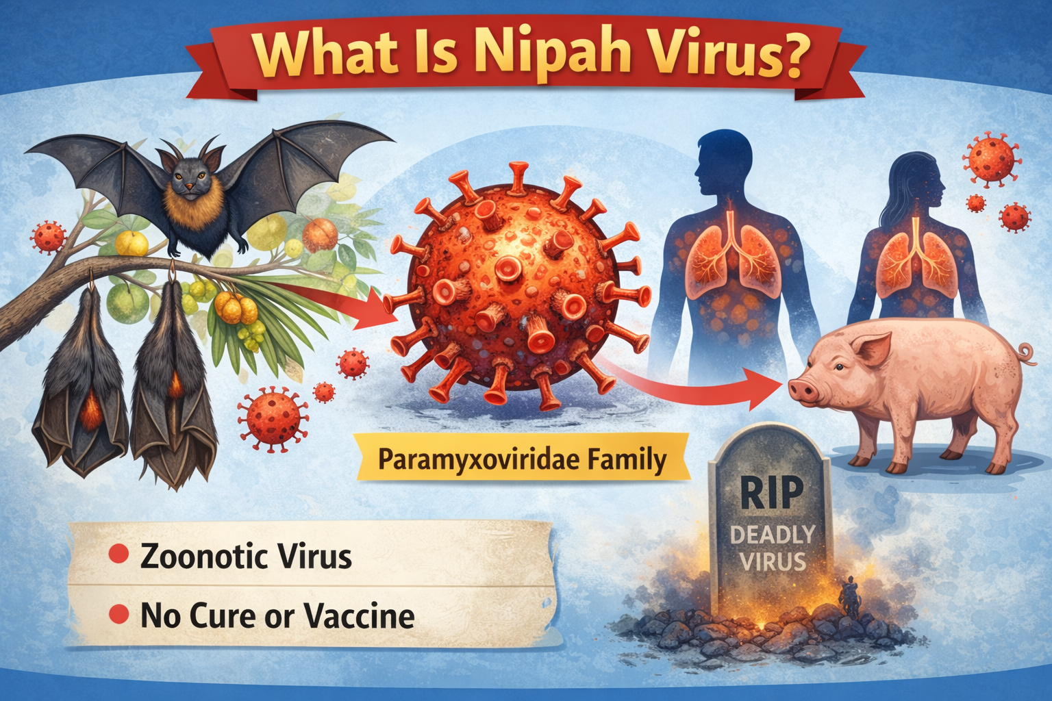 نیپا وائرس (Nipah Virus): مکمل رہنمائی، علامات، اسباب، منتقلی، تشخیص، علاج اور احتیاطی تدابیر
